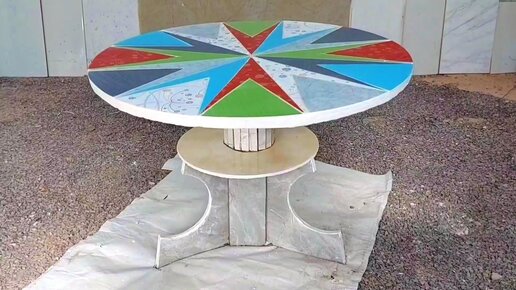 Креативный садовый журнальный столик из цемента и очень специальной керамической плитки №9!