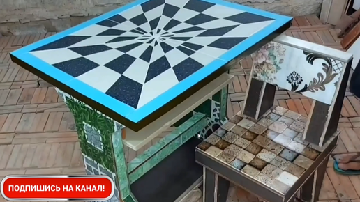 Сделайте стол 3d-формы из цемента и керамической плитки #14!