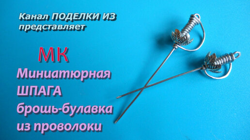 Миниатюрная ШПАГА брошь-булавка из проволоки