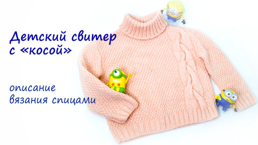Свитер детский, Пуловер с асимметричной косой, описание вязания спицами