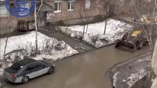 Экскаваторщик играется в луже