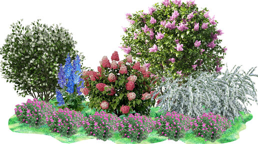 Схема цветущей клумбы с сиренью