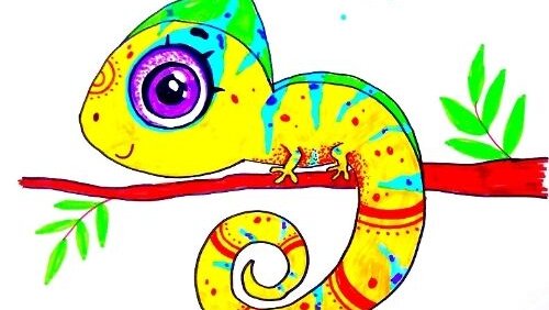 Рисуем хамелеона фломастерами/ Простой рисунок
