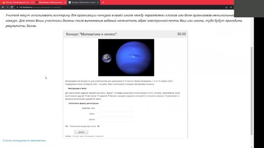 Конкурс-викторина ко дню космонавтики "Математика и космос"
