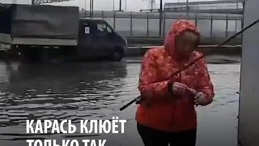 В Шушарах такие лужи на дорогах, что люди вышли ловить рыбу