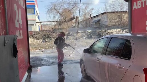 Моем машину на мойке самообслуживания.