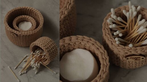 Вяжем корзину из полиэфирного шнура | Корзина для ватных палочек и дисков