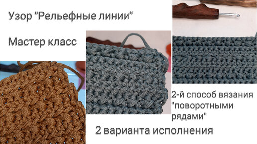 МК узор "Рельефные линии" 2-й способ вязания "поворотными рядами".