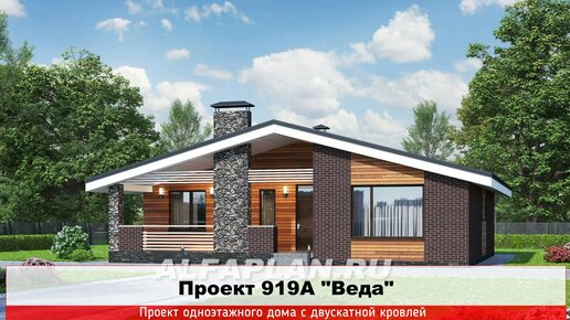 ПРОЕКТНОЕ ВИДЕО: Проект одноэтажного дома с двускатной кровлей "Веда 919А, 132 м2, 3 спальни