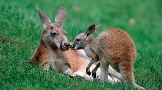 Любопытная самка кенгуру обнюхала фотографа.