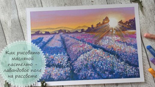 Как рисовать пейзаж масляной пастелью - лавандовое поле на рассвете