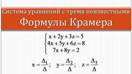 Решение системы уравнений с тремя неизвестными с помощью формул Крамера | Высшая математика