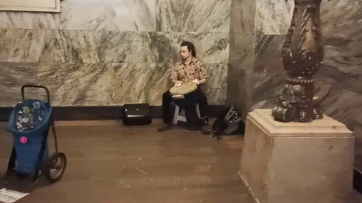 Музыкант на станции метро "Александровский сад" в городе Москве