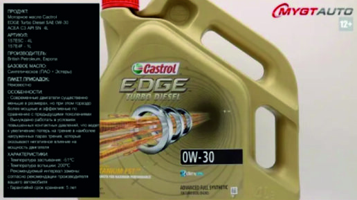 Моторное масло Cactrol EDGE Turbo Diesel SAE 0W-30 ACEA C3 API SN 4L 157E5C #ANTON_MYGT