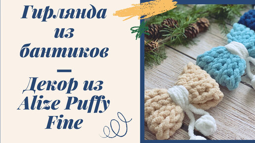 Мини-бант из Alize Puffy Fine. МК гирлянда из бантиков из Ализе Пуффи Файн.