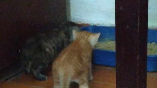 Первые вылазки котят. Знакомятся с лотком