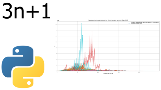 Построение множества графиков последовательностей Коллатца на одной диаграмме на python // 6
