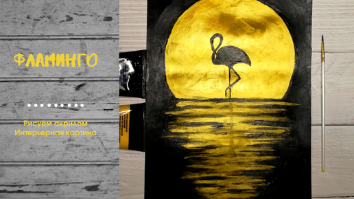 Как нарисовать фламинго. Интерьерная картина. Рисуем всего двумя красками. Черный, желтый.