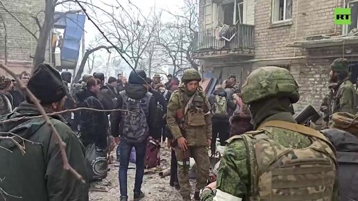 Кадры из Мариуполя, где российские морпехи эвакуировали более 80 местных жителей