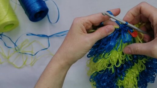 Вяжем Мочалку из вытянутых петель по спирале