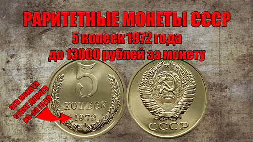 До 13000 рублей за 5 копеек 1972 года - редкая и дорогая монета СССР