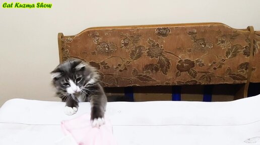 Кот Кузьма учит как надо вытирать со стола. забавные животные