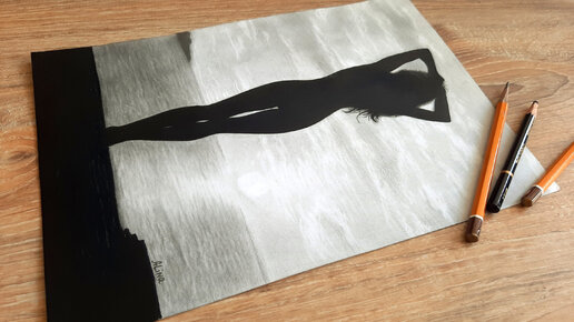 Рисую силуэт девушки на закате