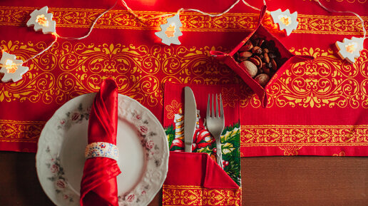 Декор праздничного стола своими руками. Как сшить скатерть. Как сшить конверт для столовых приборов.mp4