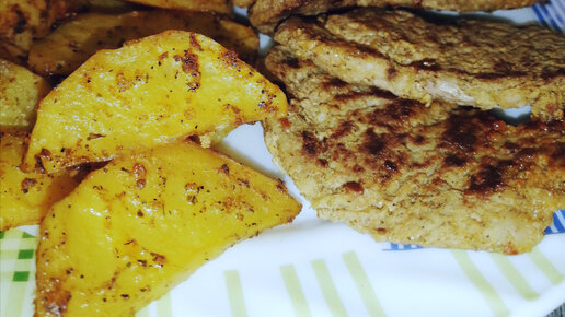 Отбивная с печёной картошкой.