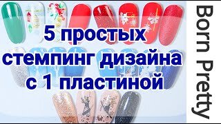 5 РОЖДЕСТВЕНСКИХ, быстрых, НОВОГОДНИХ, простых СТЕМПИНГ дизайна с 1 пластиной от BORN PRETTY