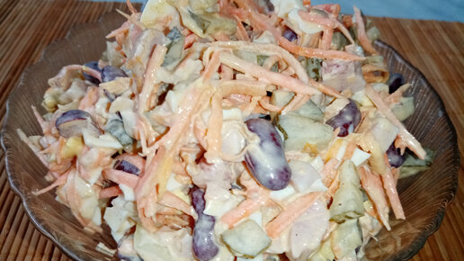 Вкусный салат с фасолью и корейской морковью. Быстро, просто и очень вкусно.