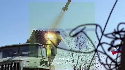 "Град" Донецкой производит залп по позициям "Азова" на территории Азовского металлургического завода в Мариуполе.