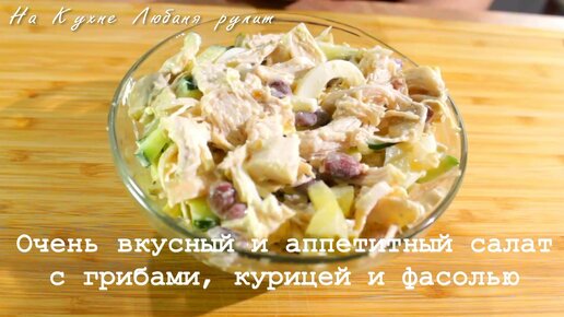 Очень вкусный и аппетитный салат с грибами, курицей и фасолью