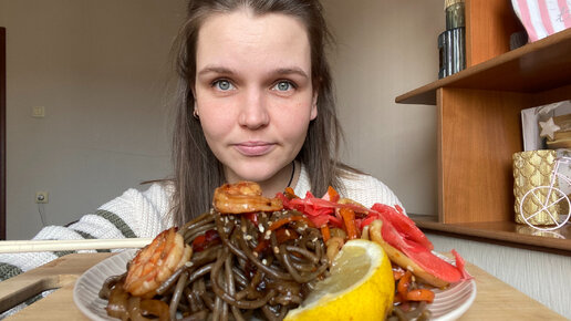МУКБАНГ лапша WOK с морепродуктами / РАЗНИЦА в ВОЗРАСТЕ 16 ЛЕТ? / Mukbang не ASMR