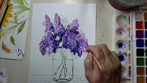 Как нарисовать сирень акварелью/Рисунки легко.