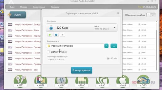 Конвертация аудио в mp3 из других форматов (AAC,FLAC,MP4A)