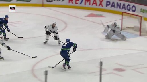 Джейсон Дикинсон №18 объезжает Тэтчера Демко и забивает.
