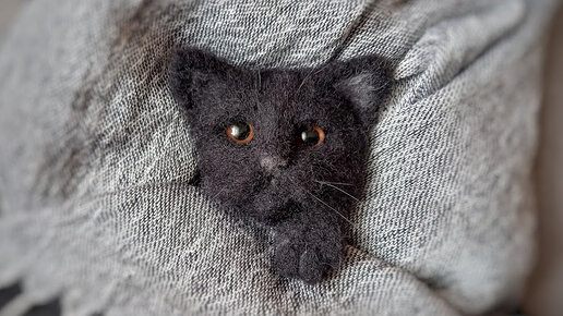 Валяние. Войлочная брошь Чёрный кот.
