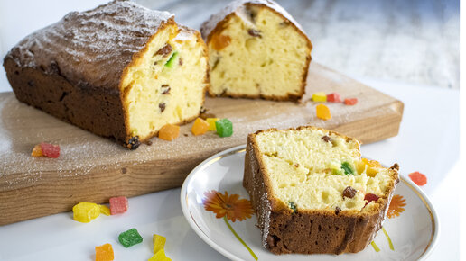 Яркий творожный кекс с цукатами и изюмом