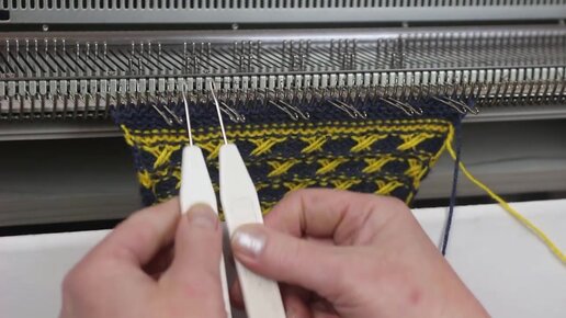 Вытянутые петли на вязальной машине. Узор №153, Уроки машинного вязания для новичков
