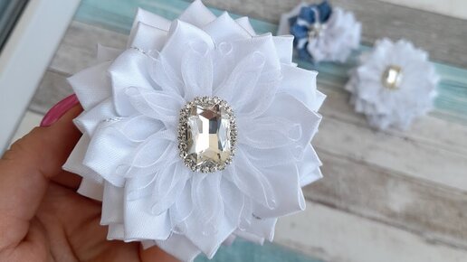 Школьный бантик на 1 сентября Лёгкая сборка Бантики из атласных лент Канзаши своими руками