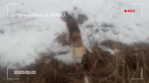 Собака играет с граблями