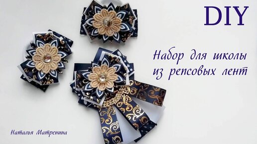 Бантики из лент канзаши, школьные бантики из лент канзаши, набор для школы