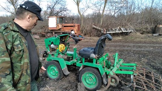 Закрытие влаги мелким культиватором на самодельном мини тракторе