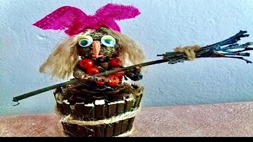 БАБА-ЯГА ОСЕННЯЯ ПОДЕЛКА. ПОДЕЛКИ из ПРИРОДНОГО МАТЕРИАЛА. Поделки с детьми своими руками.
