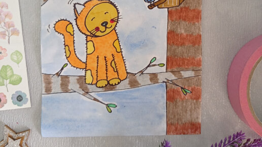 КОТ. ВЕСНА. Рисуем фломастерами, карандашами и акварелью.