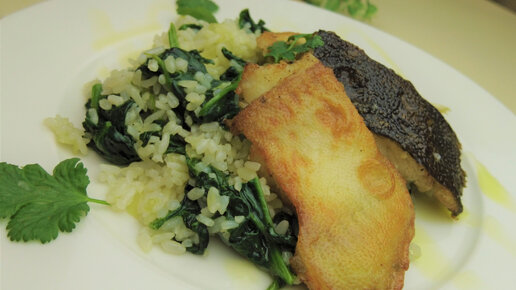 Камбала жареная, гарнир рис и шпинат! Вкуснотища!