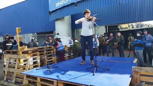 Скрипач Петр Лундстрем выступает перед мариупольцами в Центре помощи жителям города
