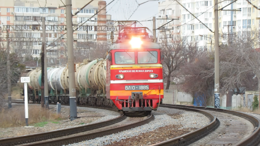 ВЛ10-1885 с наливным составом следует по перегону Симферополь Пасс. - Симферополь Грузовой