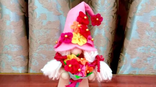 МИЛЫЙ СКАНДИНАВСКИЙ ГНОМ__ДЕВОЧКА__СО ЦВЕТАМИ ПОДЕЛКИ СВОИМИ РУКАМИ//подарок своими руками